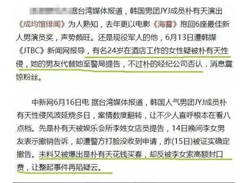 2016年,在其事业发展的如日中天的时候,朴有天接连被爆出负面消息,被曝性侵多位女性,引发了全网的震惊。