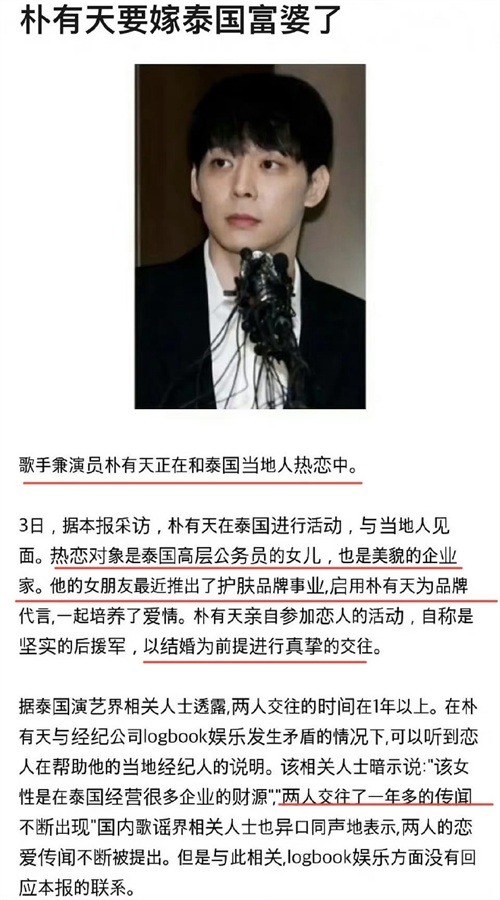 据媒体报道,朴有天交往的对象不仅是企业家,更是泰国高层的女儿,身份显赫,两人交往的时间已经有一年以上了。