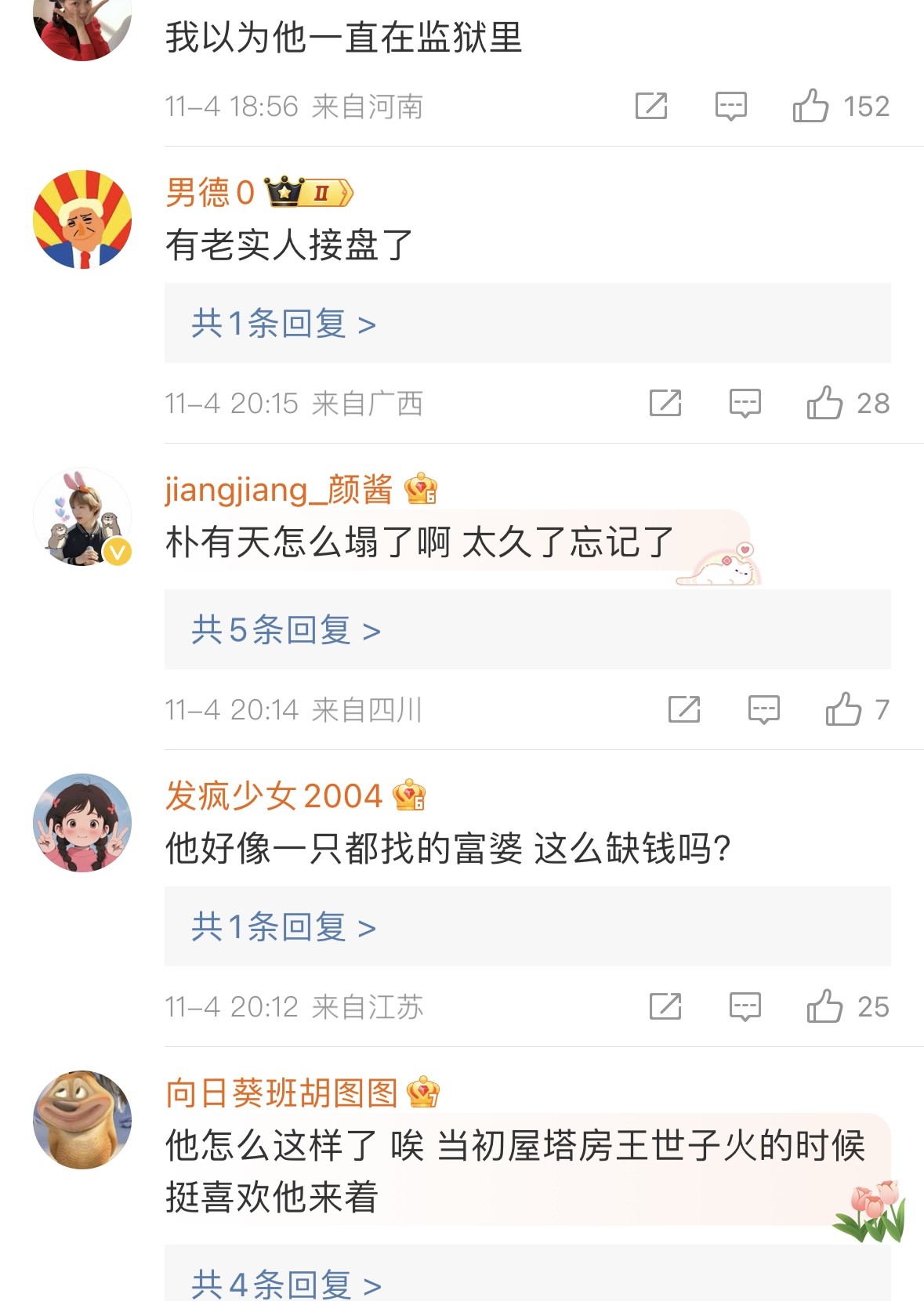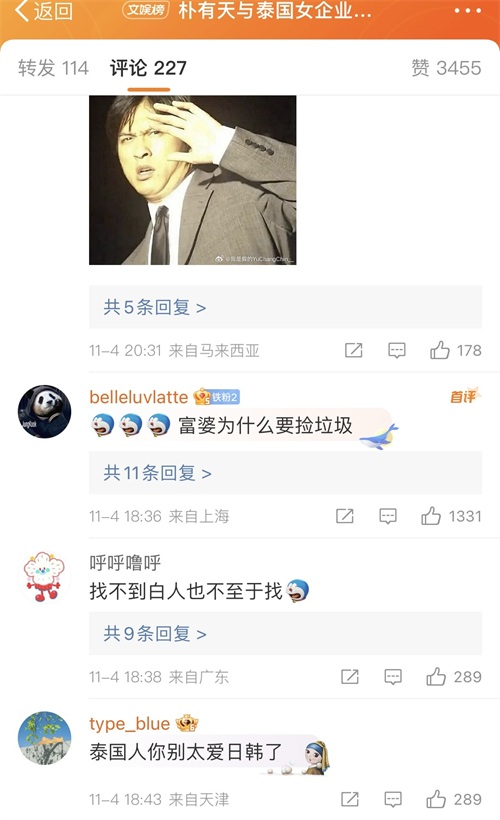 对此,网友表示不能理解,富婆怎么喜欢在垃圾堆里找男人,朴有天黑历史一箩筐,口碑相当差。