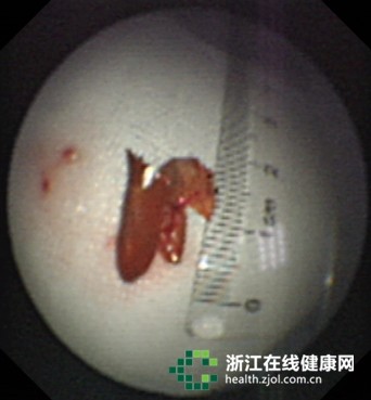 江奶奶立即被送到杭州市第一人民医院就诊,医生对其进行了气管镜检查,结果发现在右肺下部长出了肉芽,堵塞了肺部管腔,医生将肉芽清除后暴露出了异物,竟是一片辣椒皮!