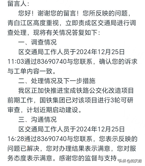 通过回复可以看到,青白江区正在加快推进宝成铁路公交化改造项目前期工作,国铁集团已对该项目进行3轮可研审查,计划近期启动建设,这也就意味着宝成铁路公交化改造项目距离开工时间不远了。