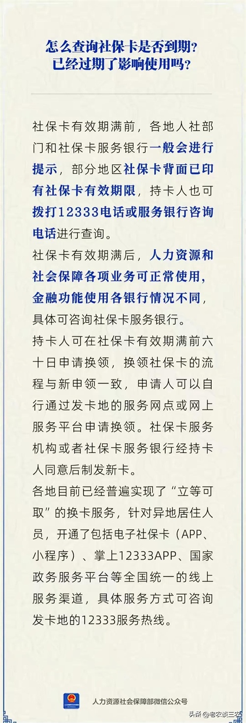 农村人怎样查询社保卡是否到期?怎样申请换领?答案全在这里