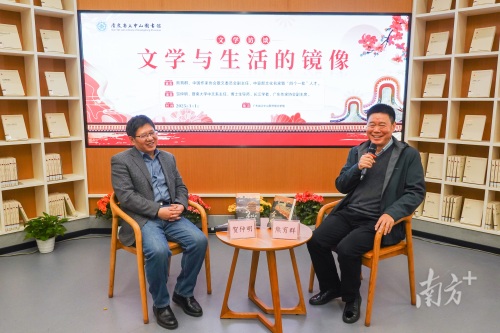 在“文学与生活的镜像”文学访谈中,熊育群和贺仲明围绕文学与生活的关系展开深入的探讨和交流,分享了个人的文学创作之路,以及如何从生活中发掘文学题材等宝贵经验。两位嘉宾以深厚的学识、独到的见解和生动博得阵阵掌声。
