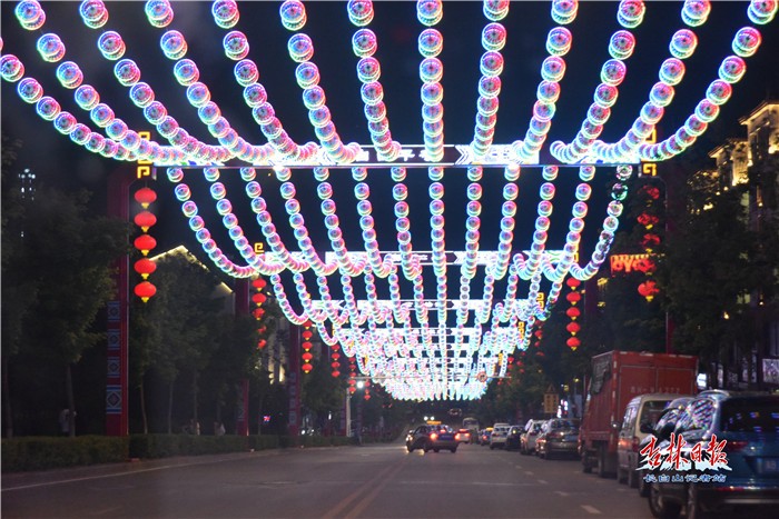 灵动的灯光,铺满了整条白山大街,置身于灯光缀点成的星空,仿佛进入了梦幻世界。一侧的小巷内,长白山登山协会的攀岩场设立在这里,一位矫健的男子正在快速的向上攀爬,下面不时传来观众的加油声。在灯光映照的巷子里,只见蹦极、跳床和商贩们叫卖的新奇玩具吸引住了孩子们的目光,有的则成群结对在中央的沙地上打滚、奔跑,一旁小吃摊香气诱人,在狭小的空间里弥漫,吸引着美食爱好者们纷至沓来。
