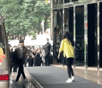 不久后杨幂也从酒店中走了出来,一席淡黄色外套现身的她,整个人青春洋溢,在看见邓伦之后就伸出双手,一路小跑送上拥抱。