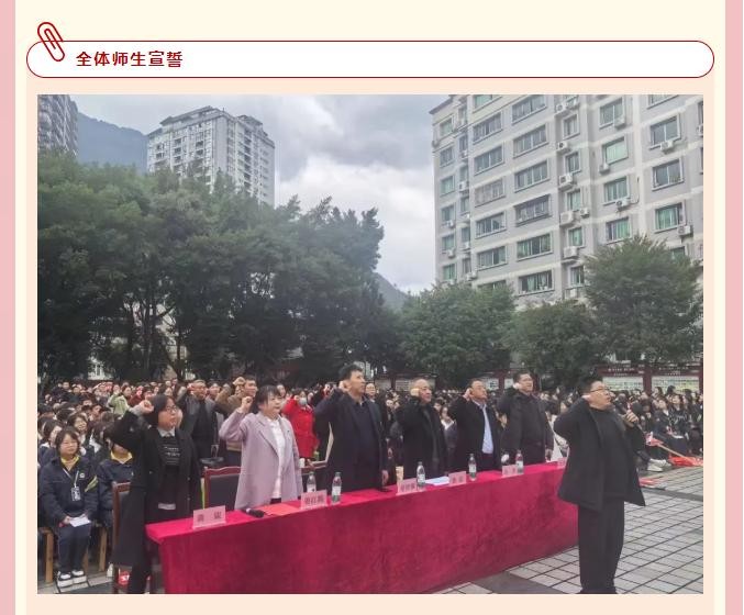 全体教师高举右拳,立誓“甘为人梯护鹏程”;千名学子声震九霄,齐呼“百日鏖战定乾坤”。