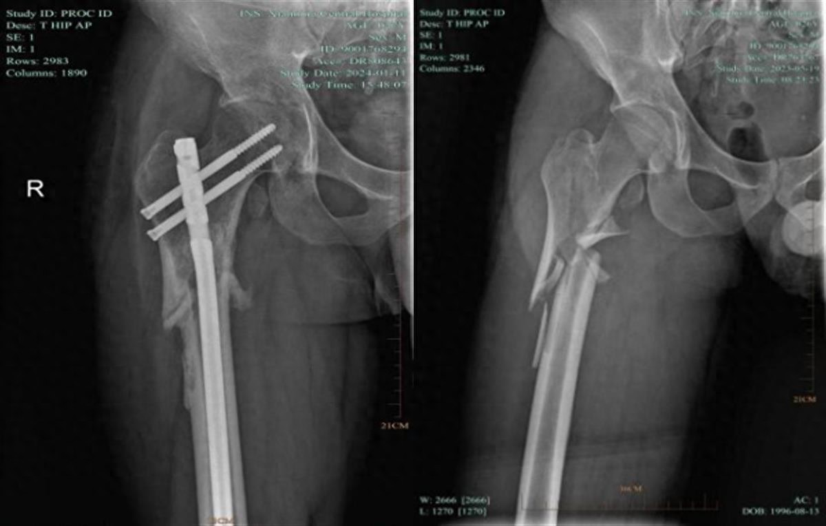 面对复杂的病情,科室医护团队迅速制定个性化手术方案,并同步开展心理疏导。“医生不仅分析病情,还像家人一样鼓励我。”裴先生回忆道。2023年6月2日,团队为其成功实施“右侧股骨上端粉碎性骨折闭合复位内固定术”。术后,医护人员每日跟进康复进展,用专业指导和暖心话语助他重燃信心。