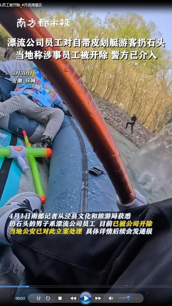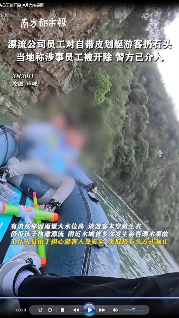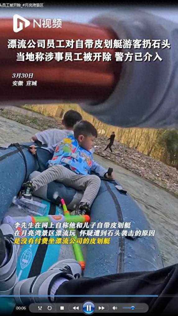 近日,一场原本愉快的漂流之旅在月亮湾景区却变成了一场惊心动魄的暴力事件。李先生带着孩子乘坐自己的皮划船在漂流时,却遭遇了岸上男子的袭击,大石头砸向他们的船只。孩子被吓得大哭不止,整个事件的起因竟然是因为李先生没有给景区漂流公司交纳所谓的“保护费”。