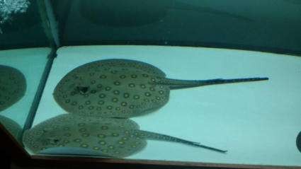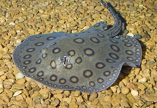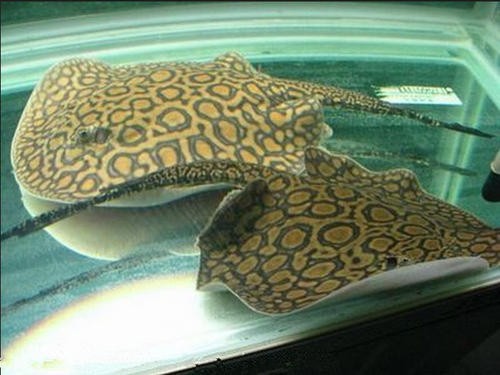 珍珠魟(学名:Potamotrygon motoro)是魟科、河魟属鱼类。雌性的身高大约80厘米,雄性的身高保持在50厘米以下。身体呈圆盘状,背部色彩由褐色至淡褐色, 上有呈圆形奶油状的斑点散布,形似珍珠,故称之为“珍珠魟鱼”。腹部纯白色,有嘴和鼻孔。尾柄的棘刺中空,其下有分泌毒液的毒腺及储藏毒液的毒囊,棘刺一年会换二三次,有倒刺。