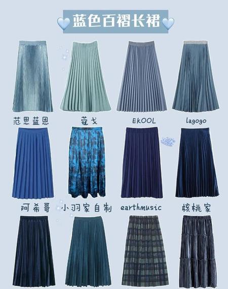 蓝色调的百褶裙,给人感觉特别的精致优雅、端庄大气。非常适合职场女性的穿搭典范。