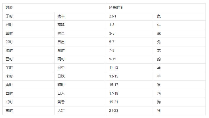 十二地支对应时间表