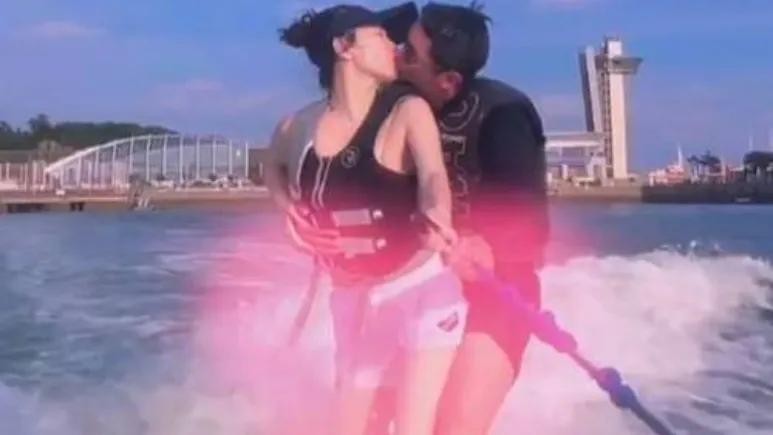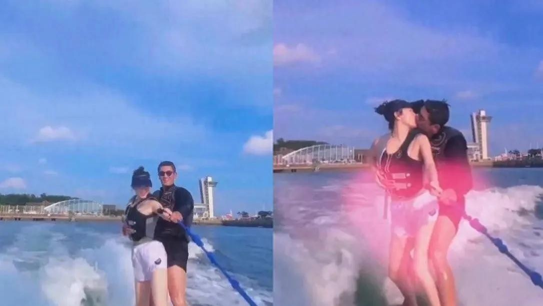 在这个美好的瞬间,虽然他们的儿子嗯哼没有出现在镜头中,但我们可以想象,他坐在快艇上,兴奋地看着父母冲浪的场景,心中充满了对家庭的温暖和幸福的感受。这幅画面不仅展现了霍思燕与杜江之间的恩爱,更传递了家庭的和谐与美好。