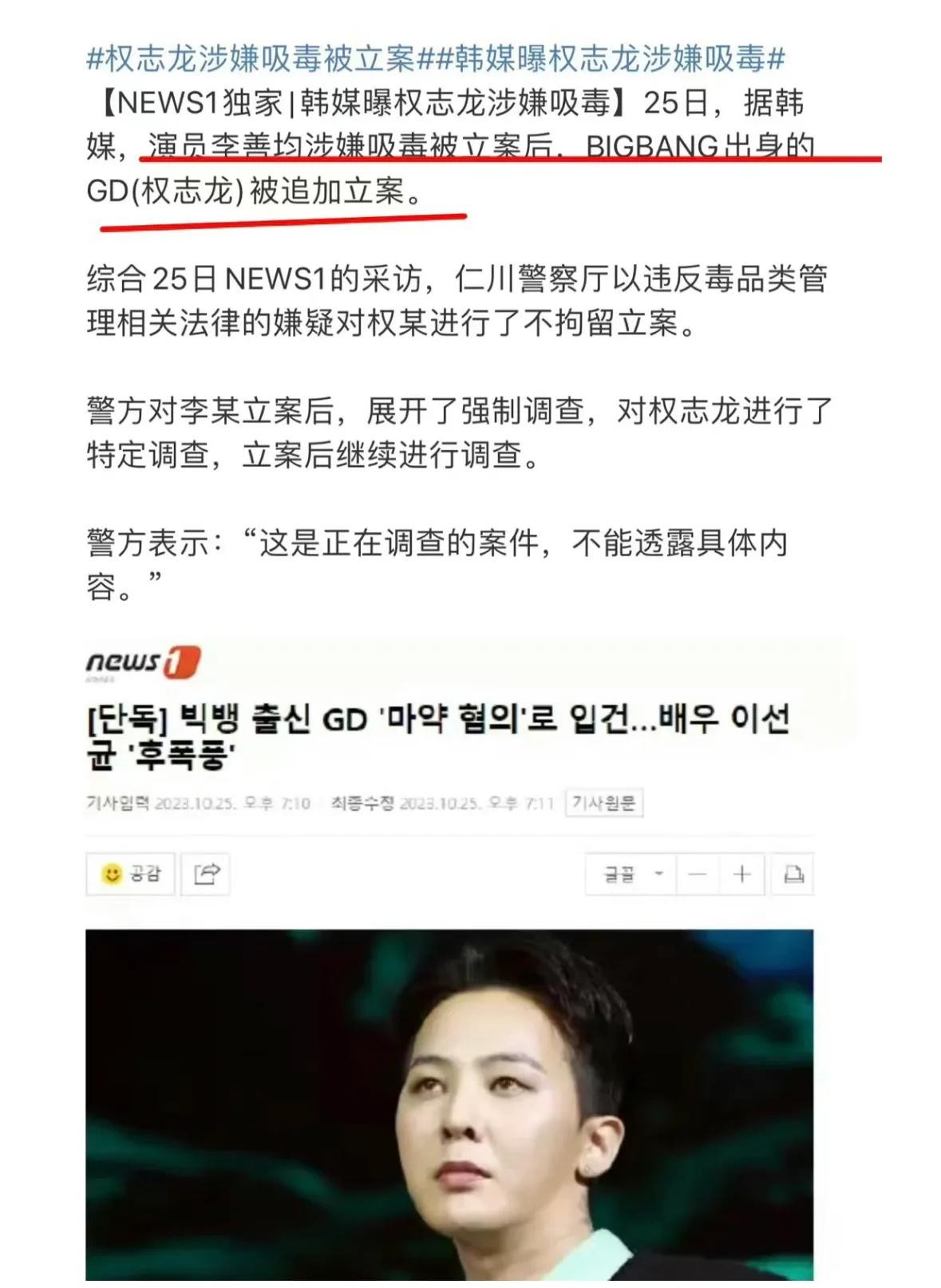 韩国知名男明星权志龙涉嫌吸毒被立案,粉丝困惑失望!