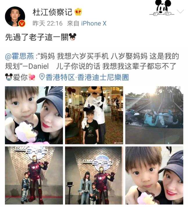 霍思燕不拍戏的时候就会带着嗯哼看世界,最近更是带着嗯哼跑到了香港,去迪士尼乐园游玩。