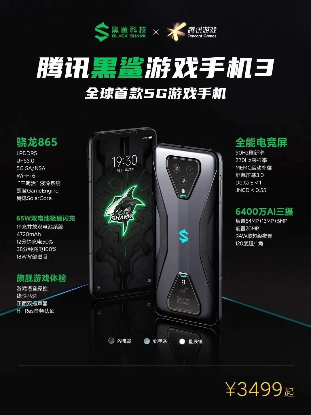 这款手机整体的性价比还是蛮高,最开始的发售价为3499元,配置上也是比较强悍,毕竟是一款游戏手机,性能方面也是很强大,也是相当的流畅。这款游戏手机从外观上看,背面造型富有科技感,两个三角形对称放置在手机顶部和底部,采用绝对对称设计,在双手握持时的背面手感,左右手感一致,也是和当下的挖孔屏、水滴屏幕有区别,并且提供“闪电黑”、“铠甲灰”、“星辰银”、“璀璨粉”4种配色可选。同时这款手机采用的是6.67英寸的AMOLED,1080×2400分辨率,并且搭载的是骁龙865处理器,所以整体手机的体验感还是蛮好的。