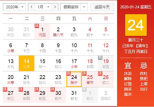 2020除夕是几月几日农历时间 除夕是星期几哪一天