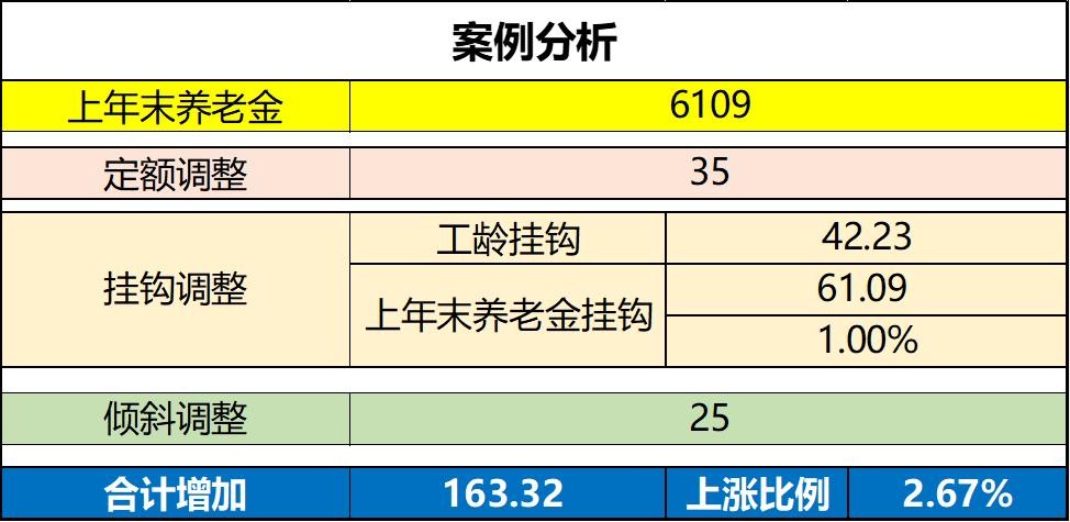 3、和养老金水平挂钩的调整增加了6109×1%=61.09元