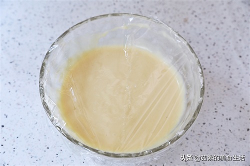 制作过程:1、鸡蛋+牛奶+白糖,搅拌均匀,再筛入所有的粉类,再次搅拌均匀,最后加入玉米油,拌成细腻的面糊,盖上保鲜膜静置一小时