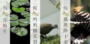 “一候萍始生;二候鸣鸠拂其羽;三候戴胜降于桑。”