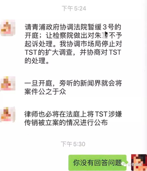 李某的目的很简单:以案换案。达尔威公司协调上海青浦区检察院做出对朱某“不予起诉”处理,自己协调市场监管局停止对达尔威公司停止扩大调查。