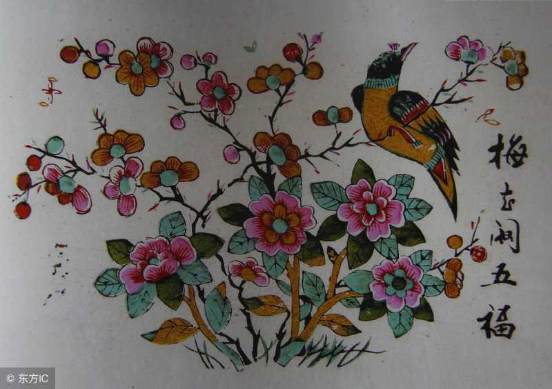 劳动中,朴实无华的姑娘借梅子唱出了自己的心声。那么,到了文人墨客手里又该玩出什么新花样和内涵呢!首先是眼光不是在梅子上,而是在花上。常见的梅花有五片花瓣,人们赋予其“福、禄、寿、喜、财”五种寓意。在绘画上,习惯绘出红梅枝上翘配上喜鹊,代表“喜上眉梢”,寓意喜事来临、喜从天降。“举案齐眉”是梅花和绶带鸟构成。据《后汉书》记载,东汉学者梁鸿与妻子孟光感情很好。每天用餐时,孟光都把放有饭菜的食案举到与眉毛同高的位置,递给梁鸿,以示恭敬。举案齐眉便成了夫妻恩爱的代称。与梅花有关的传统吉祥图案很多,广泛应用于玉器、瓷器、雕刻、服装、家具装饰等方面。