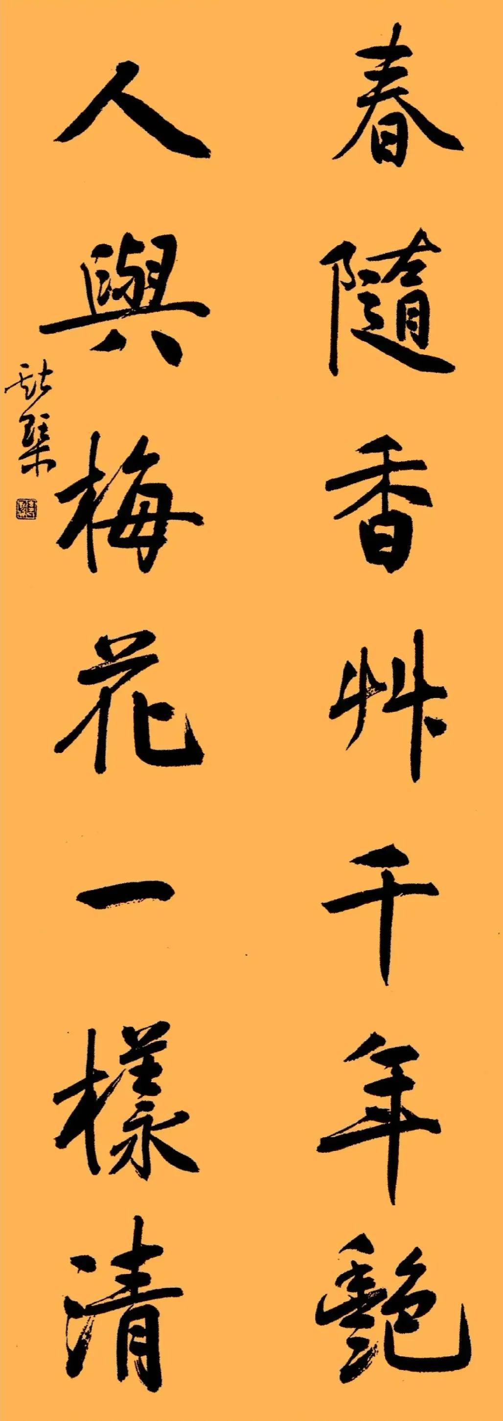 这幅作品内容是:春随香草千年艳,人与梅花一样清。