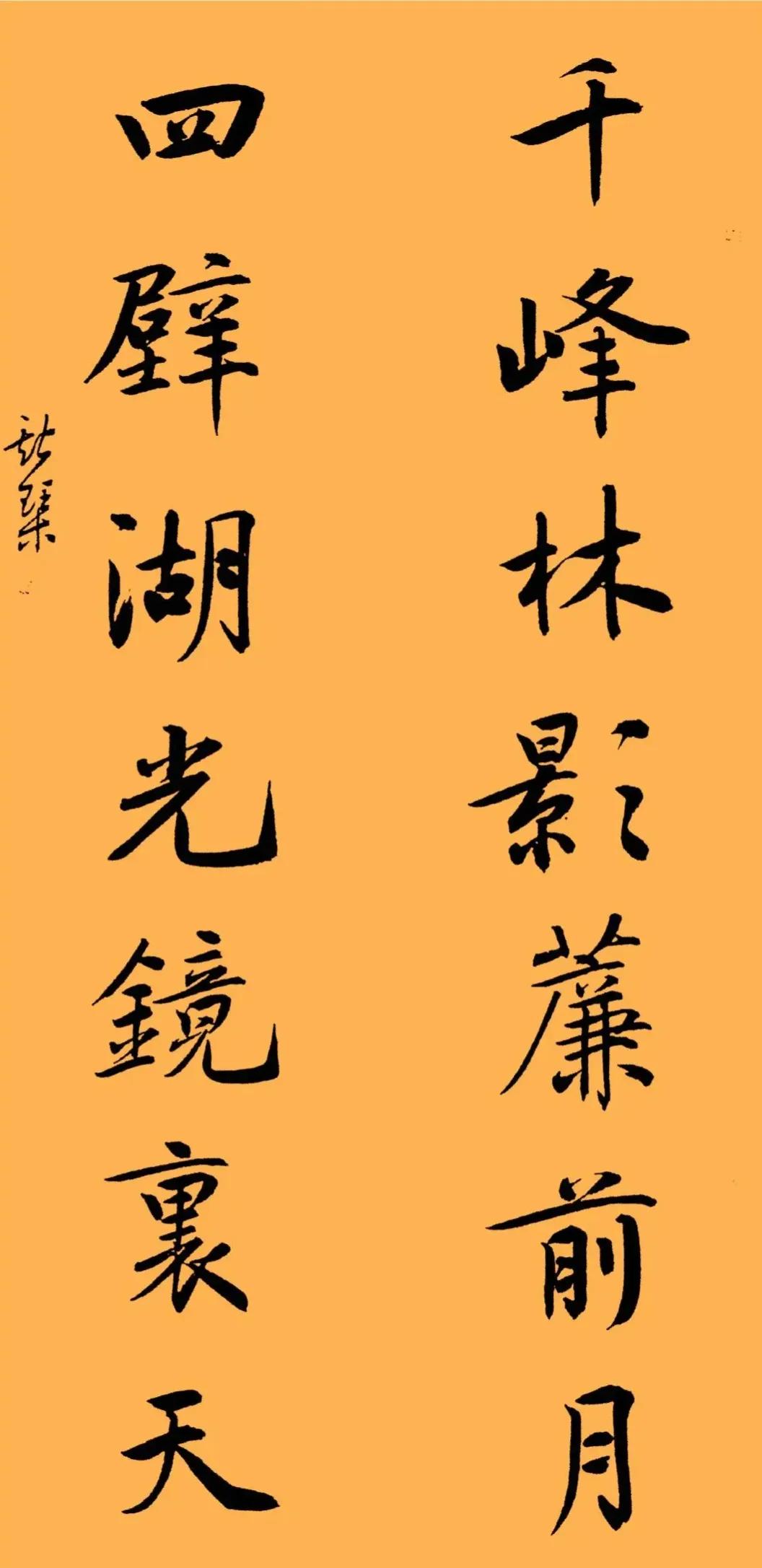 这幅作品内容是:千峰林影帘前月,四壁波光镜里天。