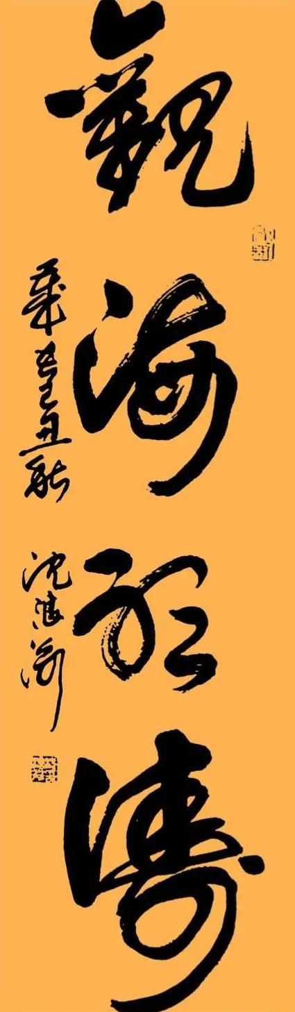 这幅作品所写内容为:观海听涛。笔酣墨饱,结字开张,气势磅礴。