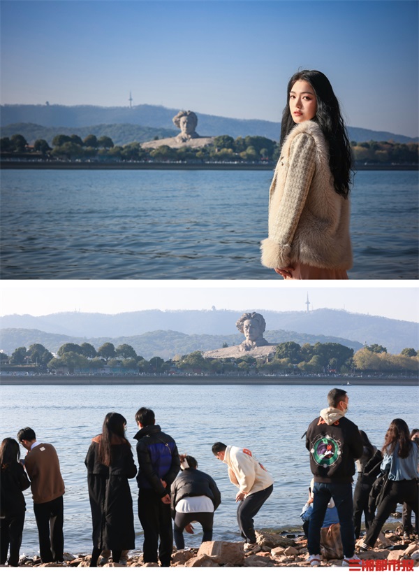 来长沙,总得跟青年毛泽东雕像合个影才算来过。不过,到了2月,大家突然发现橘子洲上不去了:地铁挤不进,排队走不动,连续两个周末单日地铁客流超过300万人/次,地铁里的姑娘鞋子都被挤飞。这也难不倒外地游客,马上就有人发现另一处合影点:乘坐地铁四号线碧沙湖站(5号出站口),直行400米左右走到湘江边,隔江眺望江心的青年毛泽东雕像,视角比在洲上更广阔,伴着日落更出片。