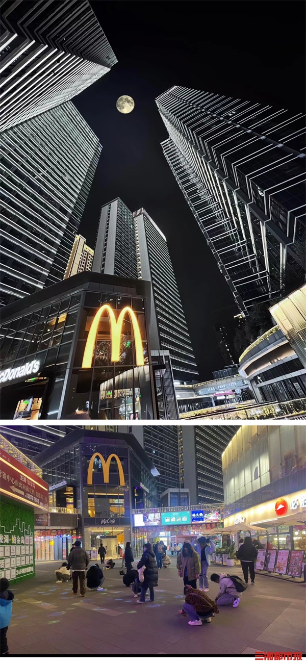 推荐两个出片的好机位:一楼麦当劳门口;旁边户外电梯上去转身正对身后餐厅,拍照时打开广角,或借用小梯子仰拍,变身长沙最靓的崽,赶紧学起来吧!