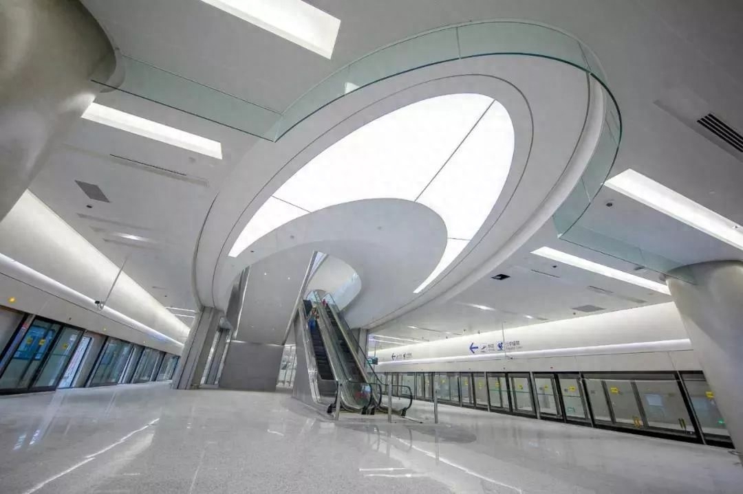 旅客捷运系统无缝衔接。旅客通过捷运系统往返航站楼与卫星厅,捷运系统分为东西两线,每条线路都是双线运行模式,适应突发情况下的不间断运行。