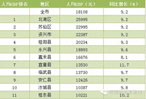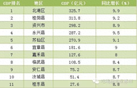 下面公布一份关于郴州市各县市区GDP生产总值的榜单,看看哪个县最富有呢?